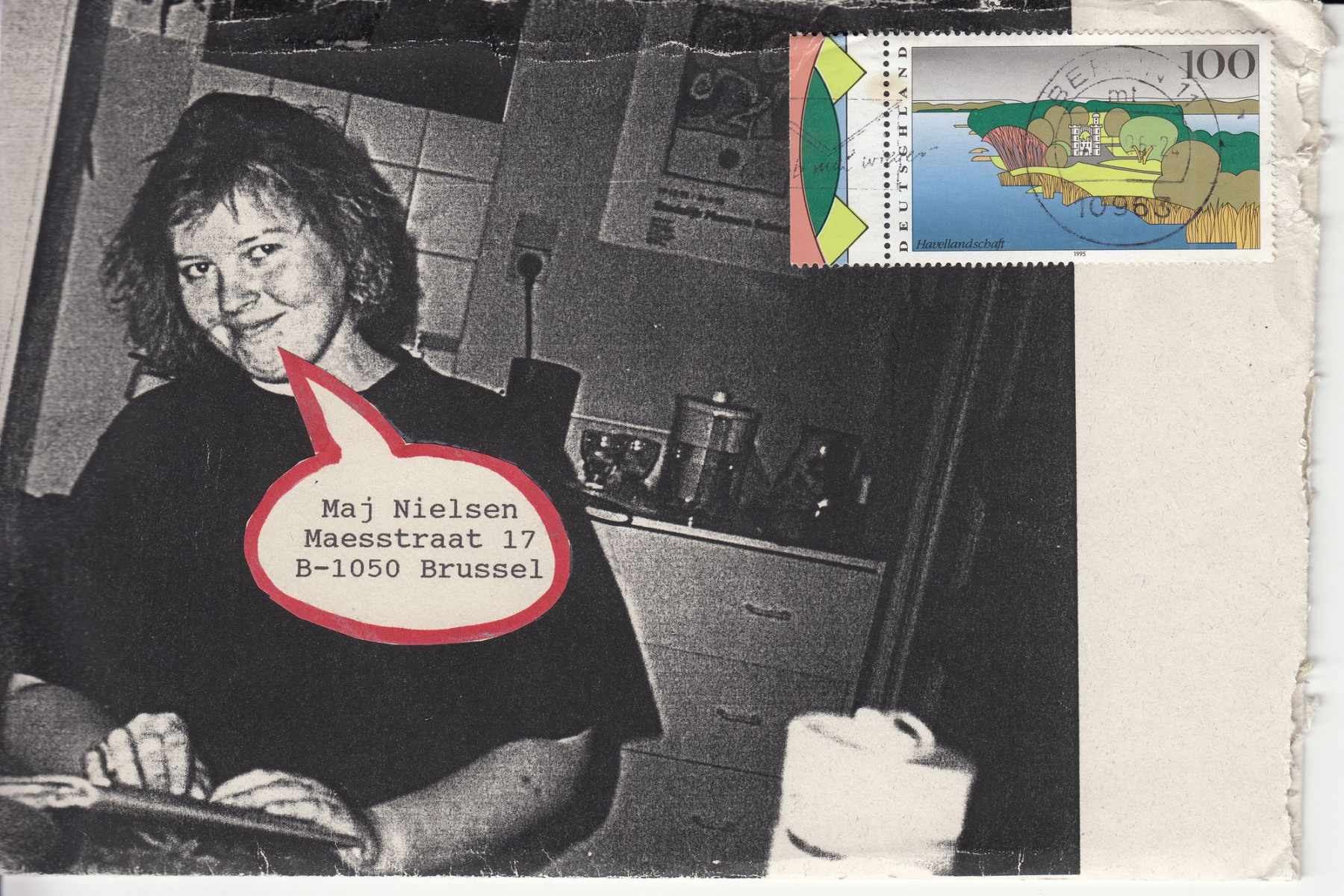 Das hier dargestellte Konvolut „Briefwechsel Berlin – Brüssel / Kopenhagen“ besteht aus einer Auswahl von 52 von mir hergestellten Briefumschlägen. Die Umschläge gehören zu Briefen, die ich frisch verliebt im Zeitraum von August 1995 bis September 1996 an meine damalige Freundin und heutige Ehefrau, Maj Westerfeld, die damals Nielsen hieß, geschickt hatte. Ich lebte schon damals in Berlin und Maj zunächst in Brüssel und später in Kopenhagen.