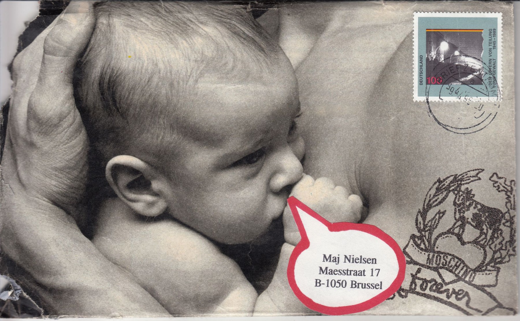 Das hier dargestellte Konvolut „Briefwechsel Berlin – Brüssel / Kopenhagen“ besteht aus einer Auswahl von 52 von mir hergestellten Briefumschlägen. Die Umschläge gehören zu Briefen, die ich frisch verliebt im Zeitraum von August 1995 bis September 1996 an meine damalige Freundin und heutige Ehefrau, Maj Westerfeld, die damals Nielsen hieß, geschickt hatte. Ich lebte schon damals in Berlin und Maj zunächst in Brüssel und später in Kopenhagen.