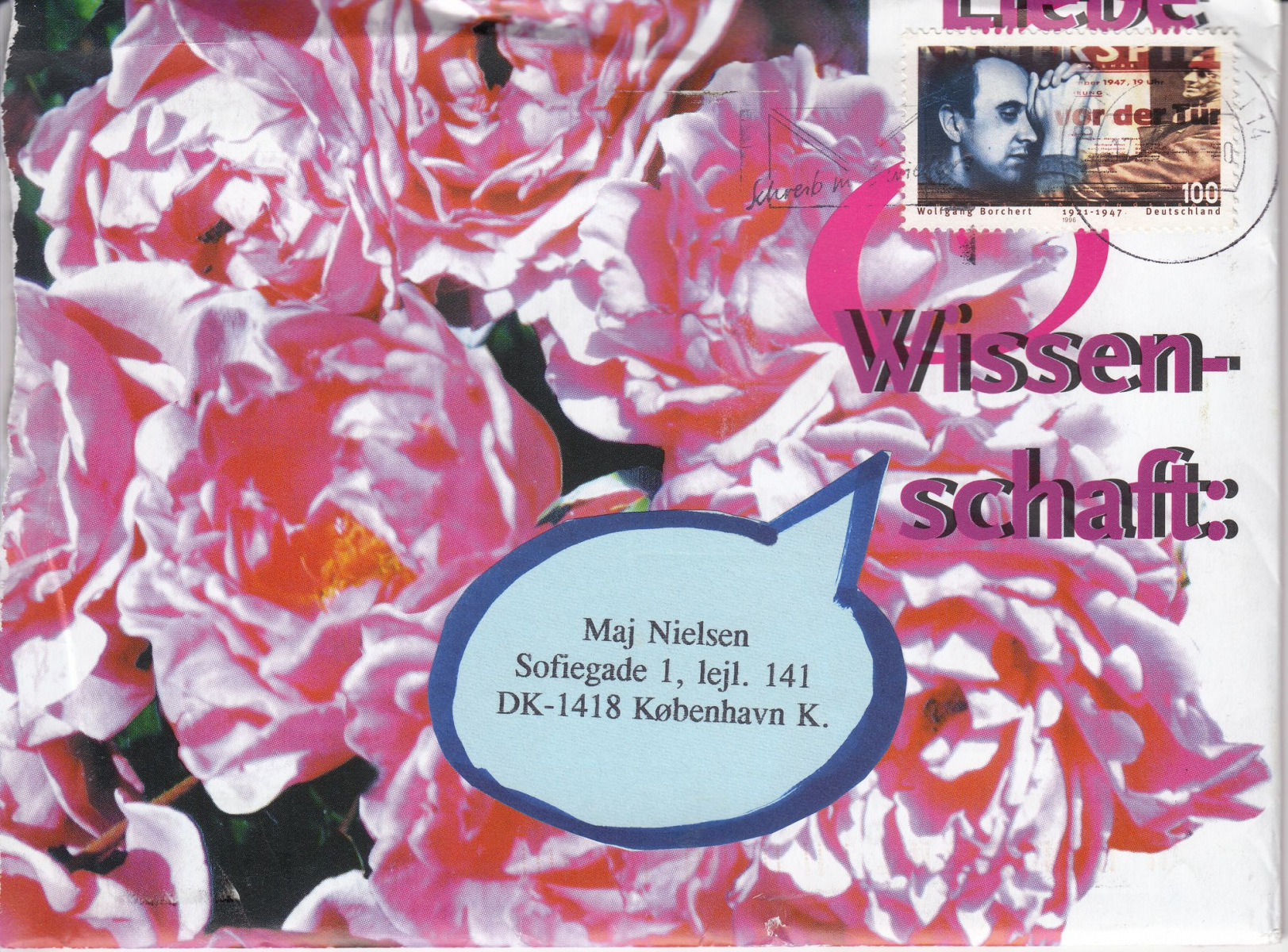 Das hier dargestellte Konvolut „Briefwechsel Berlin – Brüssel / Kopenhagen“ besteht aus einer Auswahl von 52 von mir hergestellten Briefumschlägen. Die Umschläge gehören zu Briefen, die ich frisch verliebt im Zeitraum von August 1995 bis September 1996 an meine damalige Freundin und heutige Ehefrau, Maj Westerfeld, die damals Nielsen hieß, geschickt hatte. Ich lebte schon damals in Berlin und Maj zunächst in Brüssel und später in Kopenhagen.