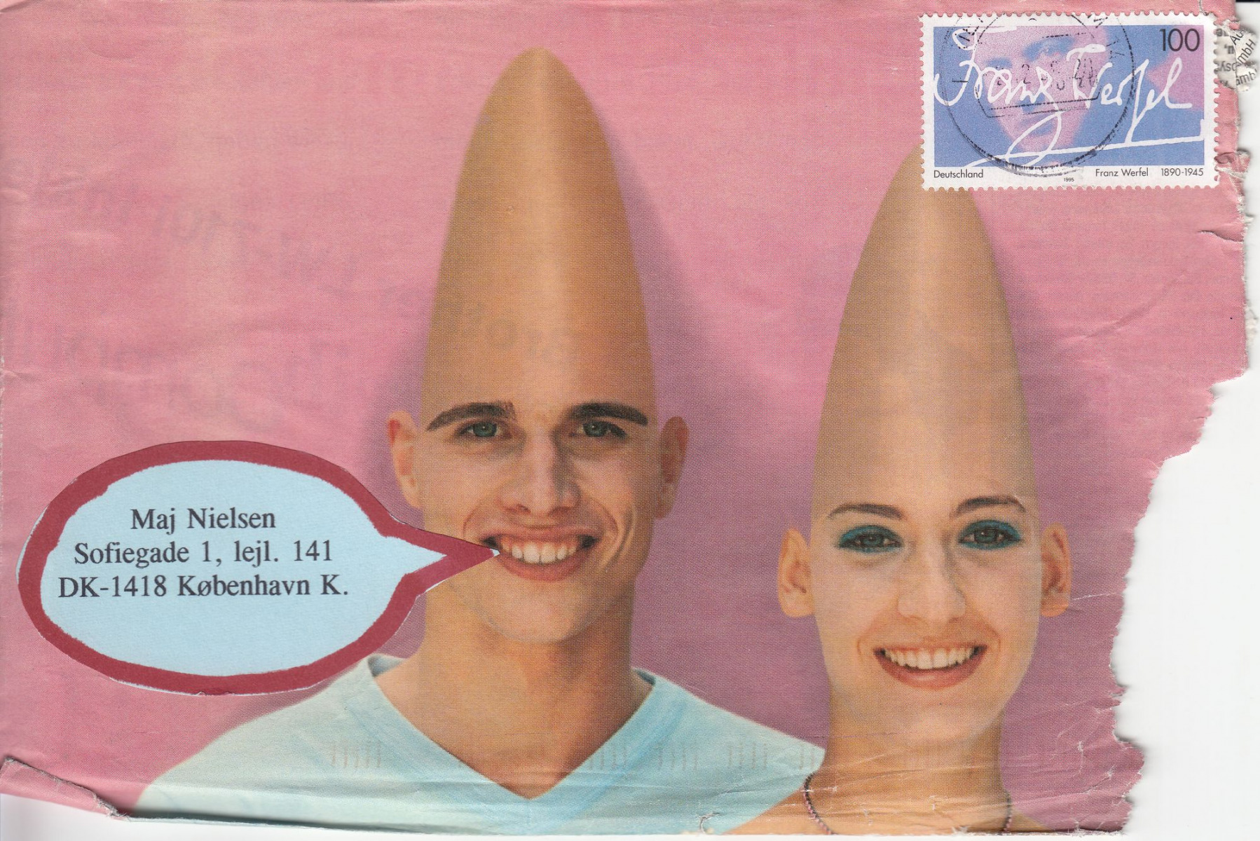 Das hier dargestellte Konvolut „Briefwechsel Berlin – Brüssel / Kopenhagen“ besteht aus einer Auswahl von 52 von mir hergestellten Briefumschlägen. Die Umschläge gehören zu Briefen, die ich frisch verliebt im Zeitraum von August 1995 bis September 1996 an meine damalige Freundin und heutige Ehefrau, Maj Westerfeld, die damals Nielsen hieß, geschickt hatte. Ich lebte schon damals in Berlin und Maj zunächst in Brüssel und später in Kopenhagen.