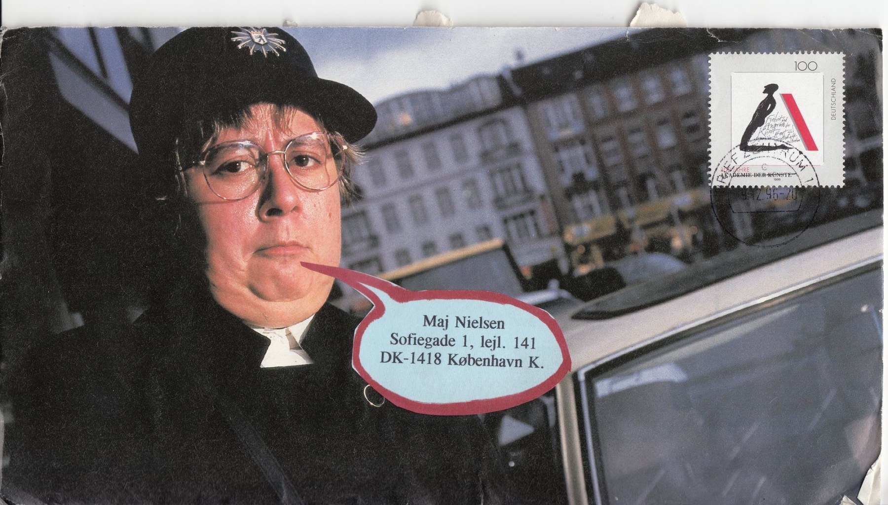 Das hier dargestellte Konvolut „Briefwechsel Berlin – Brüssel / Kopenhagen“ besteht aus einer Auswahl von 52 von mir hergestellten Briefumschlägen. Die Umschläge gehören zu Briefen, die ich frisch verliebt im Zeitraum von August 1995 bis September 1996 an meine damalige Freundin und heutige Ehefrau, Maj Westerfeld, die damals Nielsen hieß, geschickt hatte. Ich lebte schon damals in Berlin und Maj zunächst in Brüssel und später in Kopenhagen.