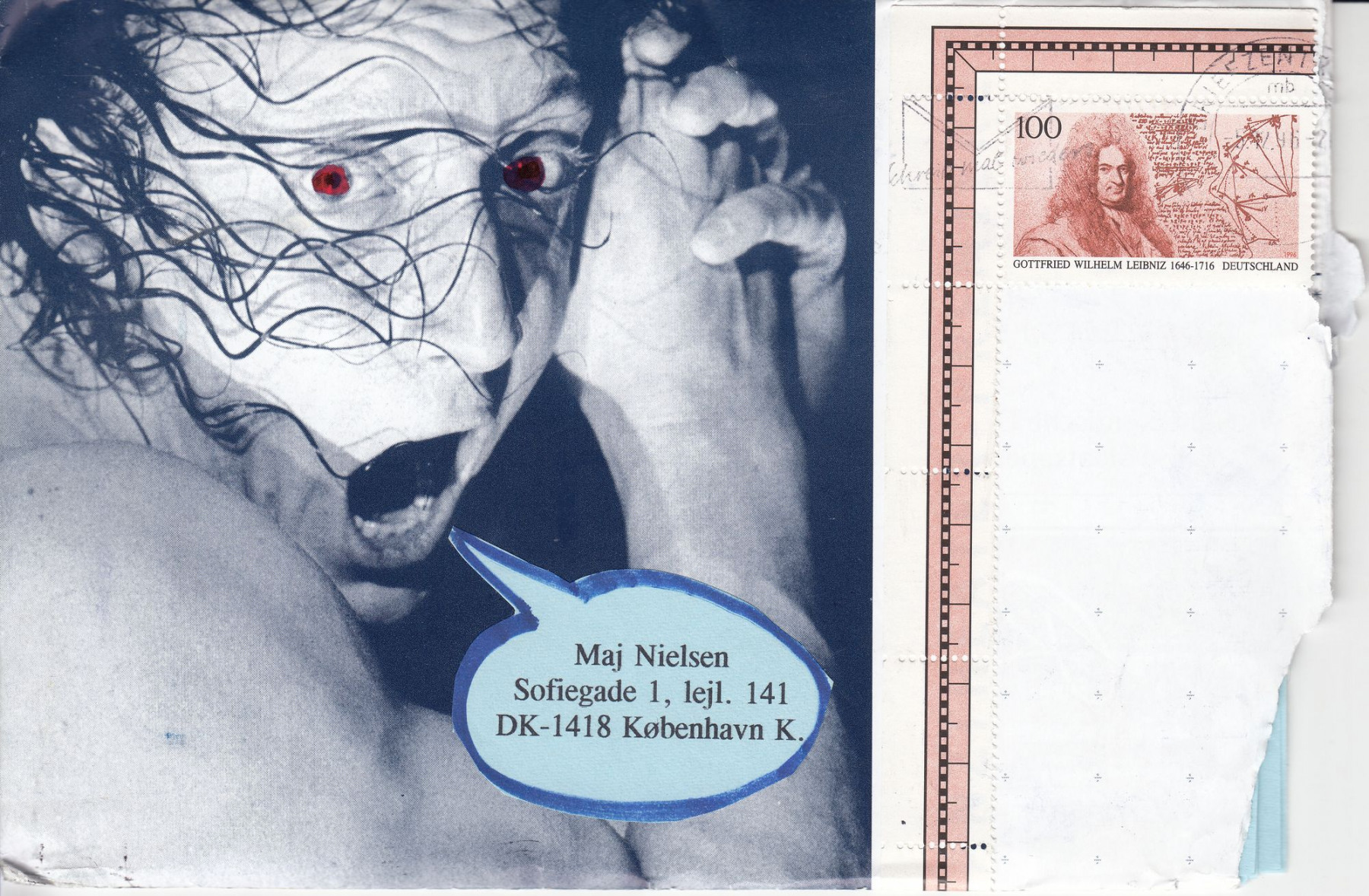 Die Umschläge sind überwiegend farbige Collagen aus Ausrissen aus Hochglanzzeitschriften (unter anderem: Zeit Magazin und FAZ Magazin) sowie von Reklamefotos. Vereinzelt habe ich auch eigene Fotos fotokopiert und aus den Kopien Briefumschläge gestaltet. Ein wiederkehrendes Gestaltungsmerkmal ist eine Comicsprechblase mit Majs Adresse, die dem Mund einer abbildeten Person oder Tieres entspringt. Einige Fotos bzw. Collagen verwiesen anzüglich auf anzügliche sexuelle Praktiken. Vermutlich verweigerte auch deshalb die Belgische Post den Transport und schickte Brief Nr. # an den mich zurück, sodass ich ihn dann in einen neutralen Schutzumschlag stecken und diesen dann ein zweites Mail an Maj schicken musste. Brief Nr. # hat seine aufgeklebte Sprechblase verloren. Um den dekorativen Charakter der Briefumschläge zu erhöhen, habe ich mich bemüht, möglichst immer Sondermarken zu verwenden.