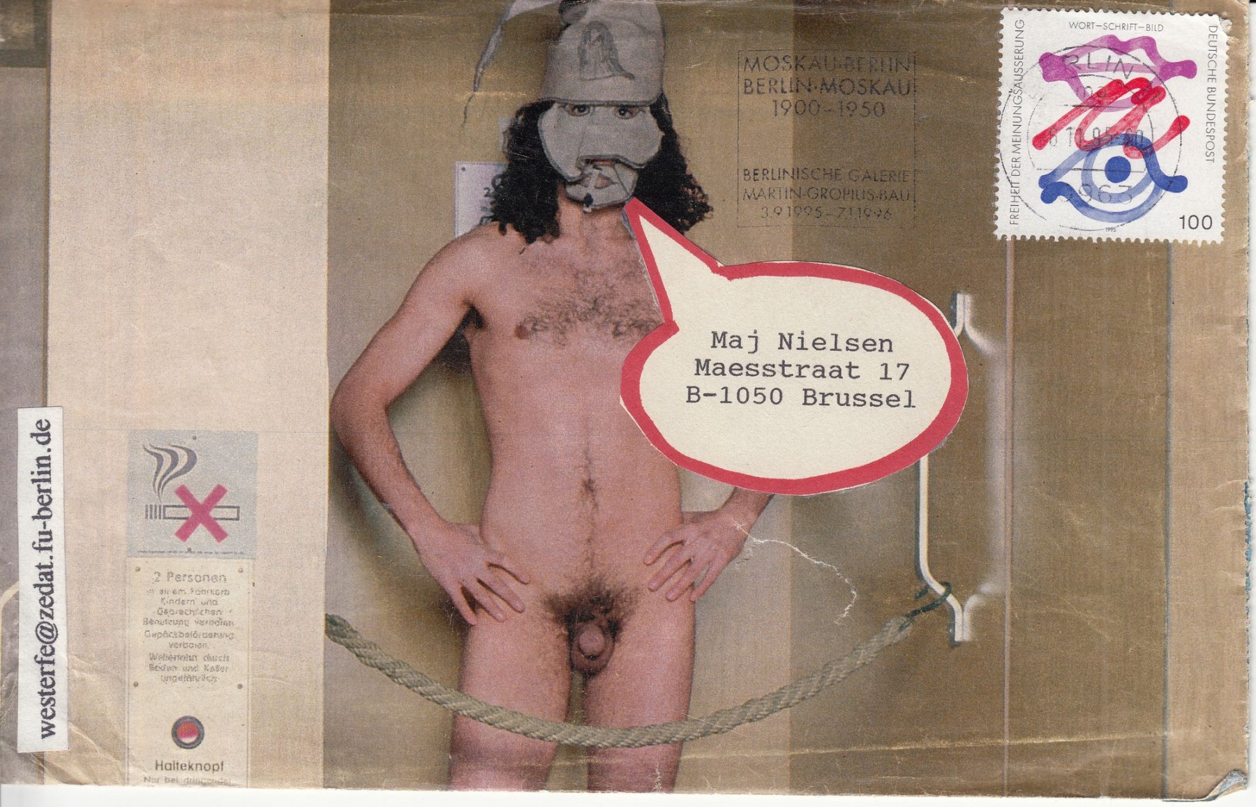 Das hier dargestellte Konvolut „Briefwechsel Berlin – Brüssel / Kopenhagen“ besteht aus einer Auswahl von 52 von mir hergestellten Briefumschlägen. Die Umschläge gehören zu Briefen, die ich frisch verliebt im Zeitraum von August 1995 bis September 1996 an meine damalige Freundin und heutige Ehefrau, Maj Westerfeld, die damals Nielsen hieß, geschickt hatte. Ich lebte schon damals in Berlin und Maj zunächst in Brüssel und später in Kopenhagen.