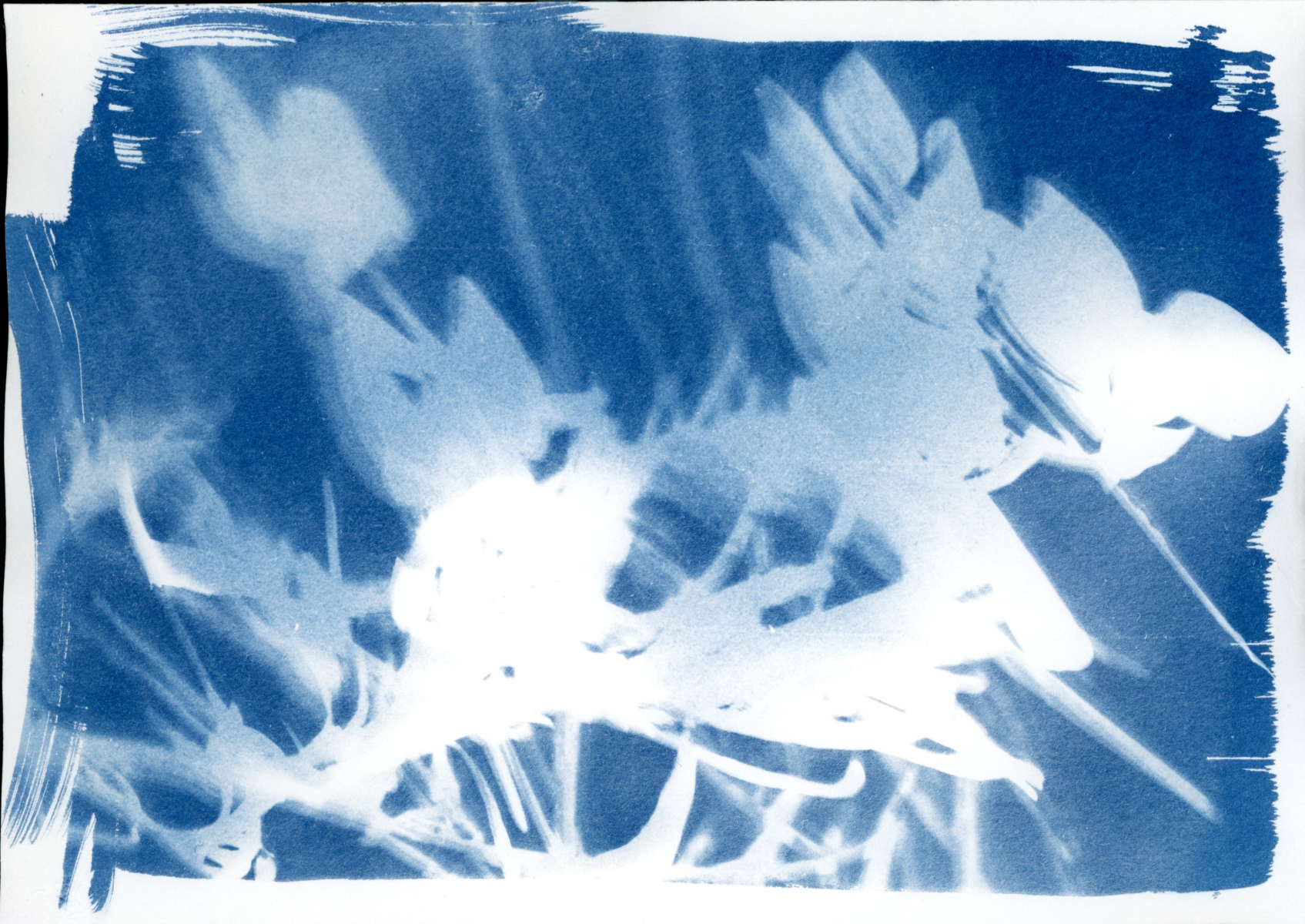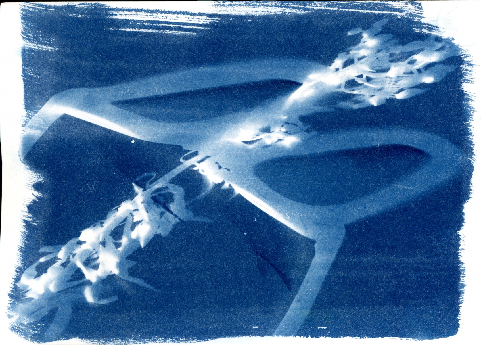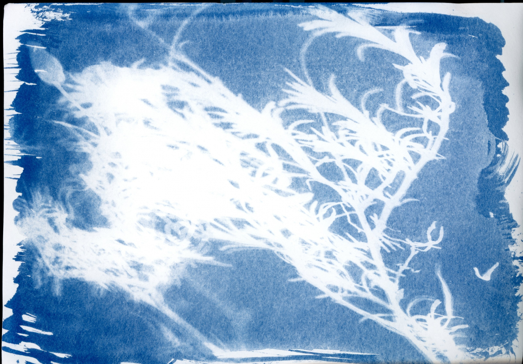Im Oktober 2025 habe ich erstmals einen Cyanotypie-Workshop beim bildenden Künstler Eike Läuen besucht. Hier eine Auswahl meiner kameralosen Fotogramme, die im natürlichen UV-Licht eines sonnenreichen Tages im Spätherbst entstanden sind.