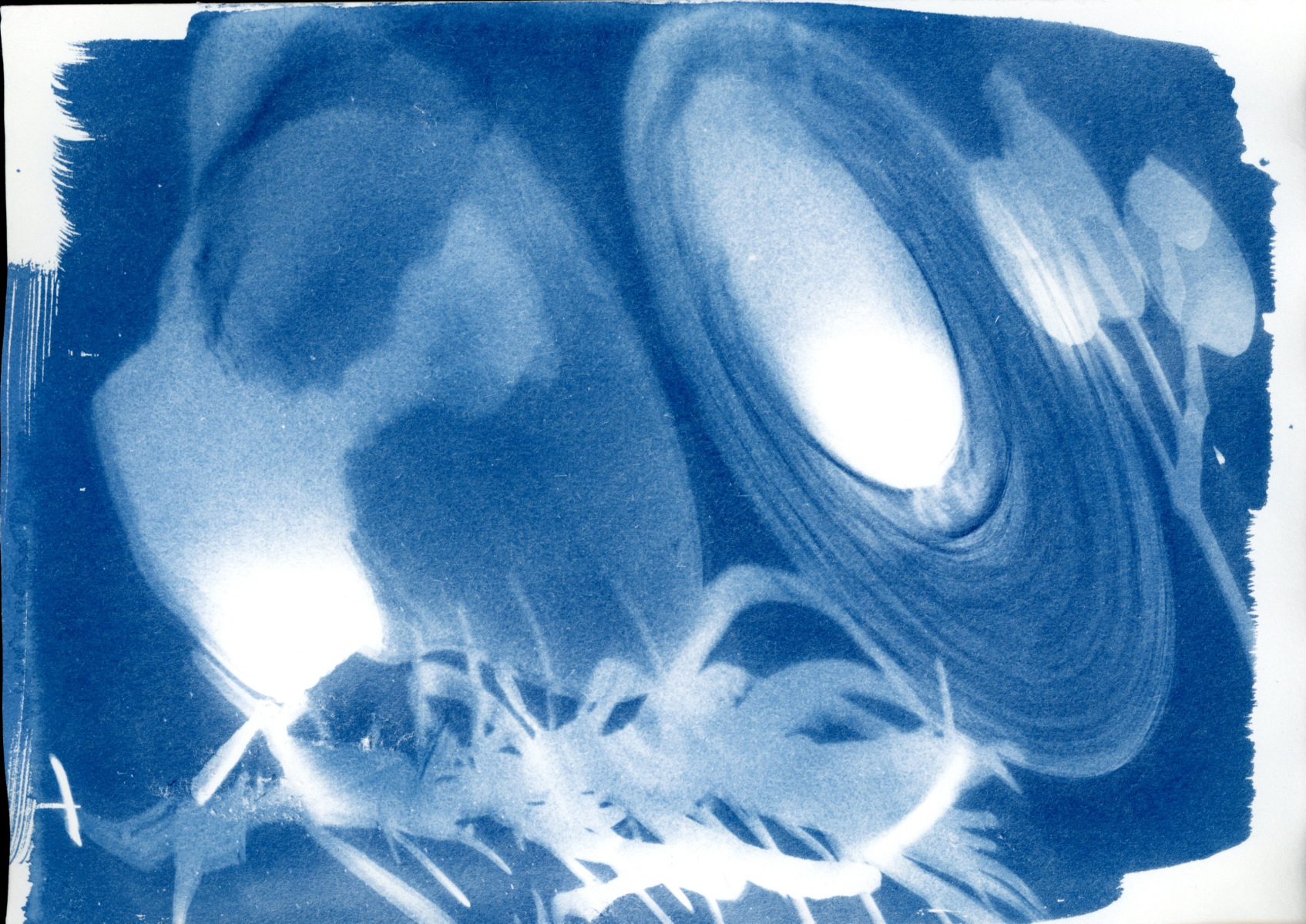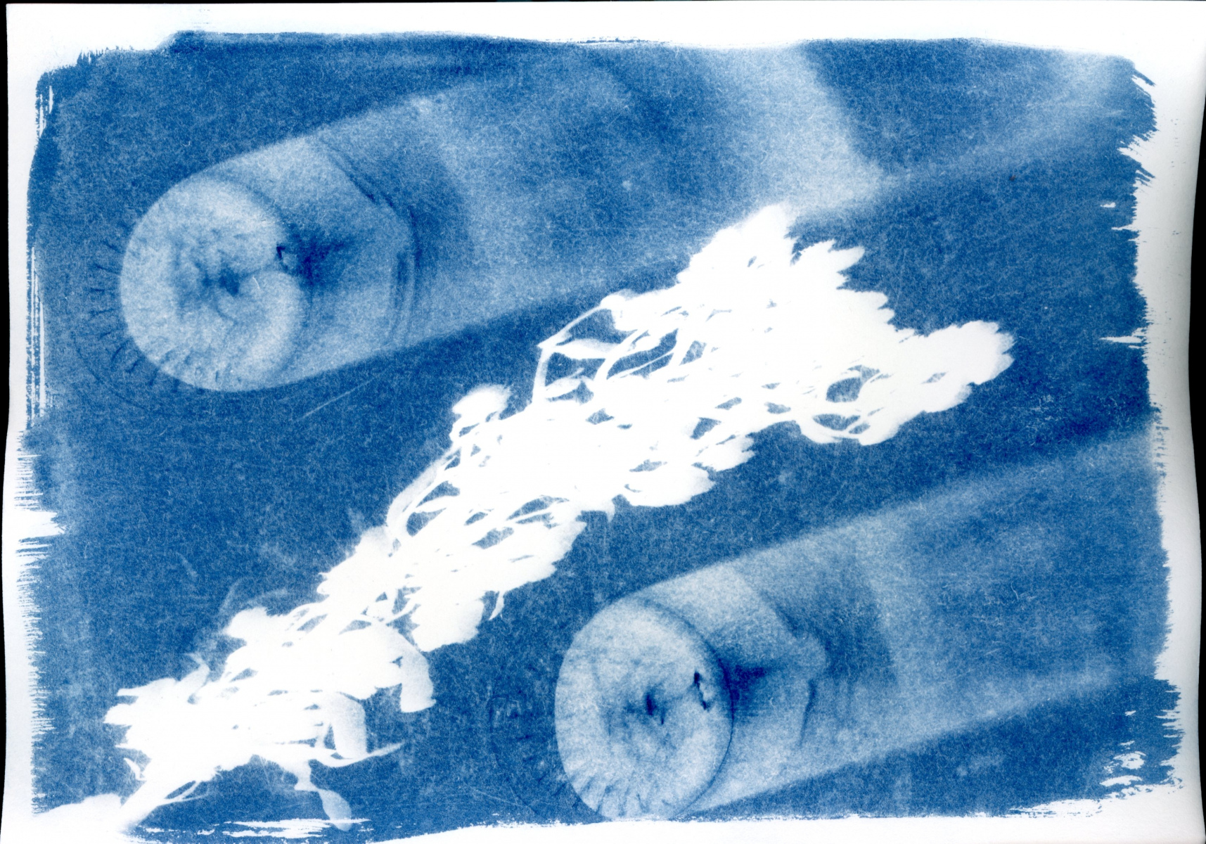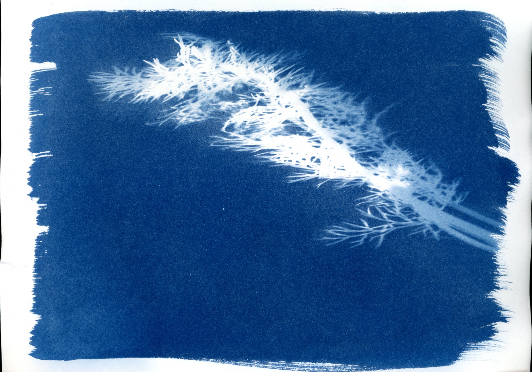 Im Oktober 2025 habe ich erstmals einen Cyanotypie-Workshop beim bildenden Künstler Eike Läuen besucht. Hier eine Auswahl meiner kameralosen Fotogramme, die im natürlichen UV-Licht eines sonnenreichen Tages im Spätherbst entstanden sind.